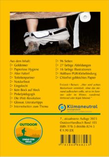 Shit happens – im echten Leben und auch in freier Wildbahn. Und früher oder später wird jeder Outdoorer erkennen, dass es weit komplizierter sein kann als vermutet, sein kleines oder großes Geschäft an der frischen Luft zu erledigen. Dieser Ratgeber nähert sich dem Thema mit viel Humor und ohne Berührungsängste. Kurze Ausflüge zur Toilettenkultur in verschiedenen Ländern leiten unterhaltsam zum eigentlichen Thema des Buches über: praxistauglichen Tipps zur Verrichtung des Geschäfts in freier Wildbahn. Erhöht wird der Nutzwert des handlichen und trotz allen Humors ernst gemeinten Ratgebers durch zahlreiche Produkttipps für praktische Hilfsmittel – vom Klappspaten bis zur faltbaren Papptoilette.