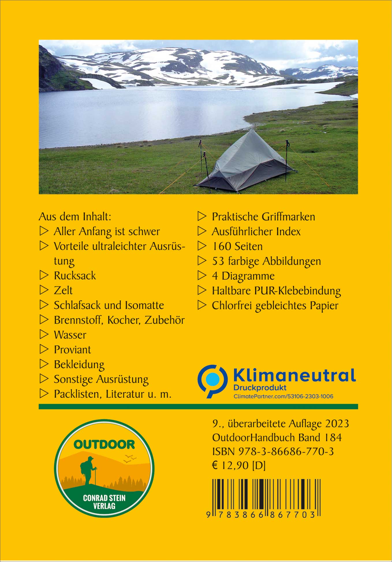 Beim Trekking entscheidet oft das Gewicht der Ausrüstung darüber, ob die Tour zum unvergesslichen Naturerlebnis wird oder zu einer endlosen Schinderei, bei der man nur noch ans Ziel kommen will. Wie man durch die richtige Wahl der Ausrüstung sein Rucksackgewicht halbieren kann, ohne auf Sicherheit und Komfort zu verzichten, zeigt dieses Buch. Sie erhalten einen Überblick, welche die leichtesten Outdoor-Produkte auf dem Markt sind und wo man diese kaufen kann, welche Alternativen es zur teuren High-Tech-Ausrüstung gibt und wie man durch Mehrfachverwendung, Selbstbau und geschickten Einsatz viele Kilogramm und Euro sparen kann. Checklisten und zahlreiche praxiserprobte Tipps helfen Ihnen bei der Umstellung Ihrer Ausrüstung auf „ultraleicht“.