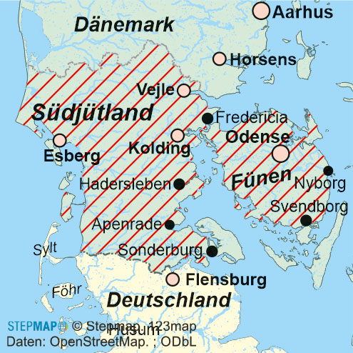 An der Nord- und Ostsee gelegen präsentiert sich Dänemark als Drehscheibe zwischen Deutschland und dem übrigen Skandinavien. Dieses kleinste Land Skandinaviens bietet vielseitige Landschaften auf einer Fläche von rund 43.000 km2 (Grönland nicht mitgezählt) – kleiner als Niedersachsen –, die auf einer Länge von 7.314 km an das Meer grenzt. Dieser Wanderführer beschränkt sich auf die gut von Deutschland aus erreichbaren Region Südjütland sowie die Insel Fünen und damit die offizielle dänische Region Syddanmark.